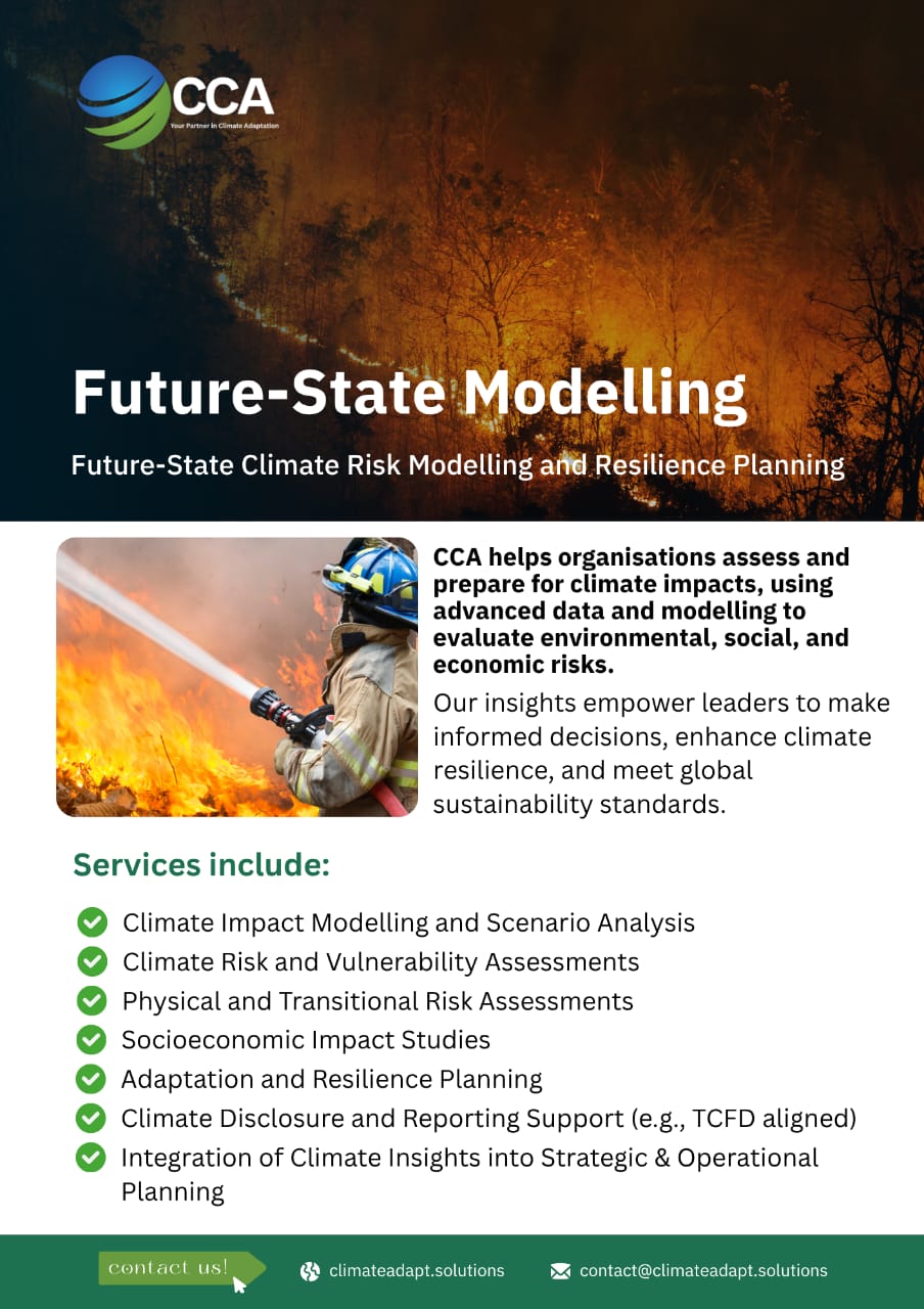 CCA supports organisations in understanding and preparing for the impacts of climate change across their operations, assets, and communities. Leveraging advanced data and modelling techniques, we assess future climate scenarios to identify potential environmental, social, and economic implications.